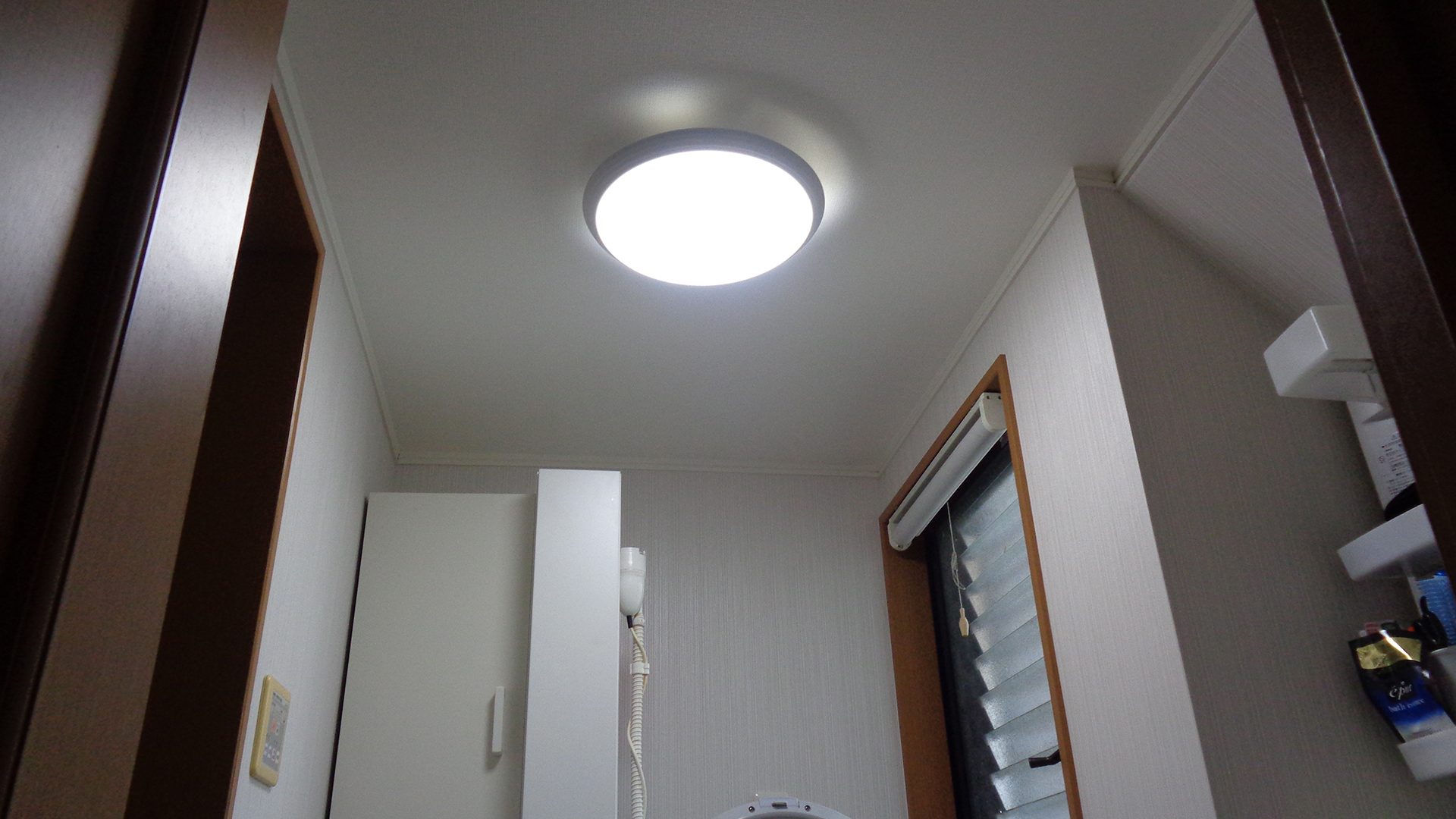 工事前写真の洗濯機横にある縦長のキャビネットは、収納を考慮して2F洗面化粧台脇に移動しました。
